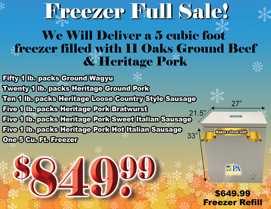 A Brand New Freezer FULL of 11 Oaks Farms Meat Ground Beef and Heritage Pork Sausage