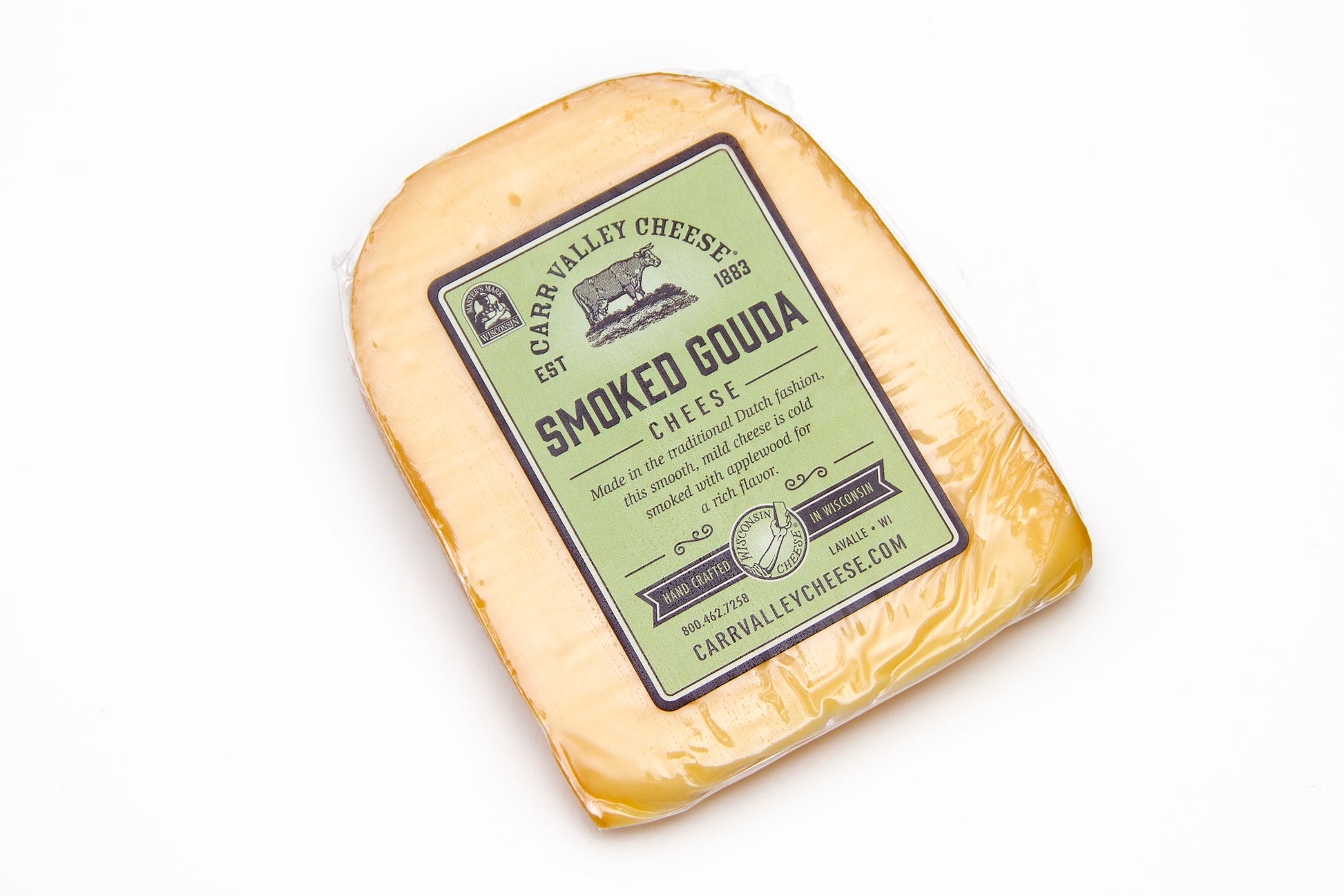 A Dutch style smoked cheese, our Smoked Gouda has a firm, creamy body with a nutty flavor with a nice smoking flavor. Smoked with apple chips and is ideal for slicing, cubing and shredding.